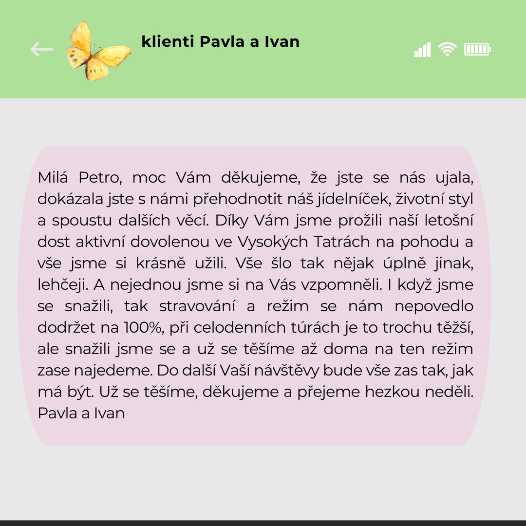 Každý krok přizpůsobuji reakci těla a životní realitě klientky.